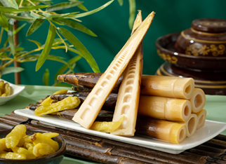 小竹筍制成菊花筍,涮火鍋、湯鍋,味尤佳。